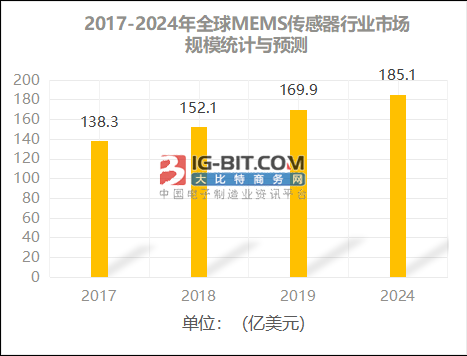 MEMS傳感器是根據(jù)微機(jī)電系統(tǒng)的典型性傳感器件。它就是指能夠大批量生產(chǎn)制造的,集薄膜光學(xué)、微傳感器、微電動(dòng)執(zhí)行機(jī)構(gòu)及其信號(hào)分析和控制回路于一體的元器件或系統(tǒng)軟件。從圖5中得知,2017年全球MEMS傳感器的市場規(guī)模是138.3億美金;上年的全球MEMS傳感器行業(yè)市場規(guī)模早已做到169.9億美金。近年來,憑借MEMS傳感器的優(yōu)點(diǎn),全球MEMS傳感器發(fā)展趨勢速率加速,因而預(yù)測分析到2024年全球的MEMS傳感器行業(yè)市場規(guī)模有希望做到185.1億美元。