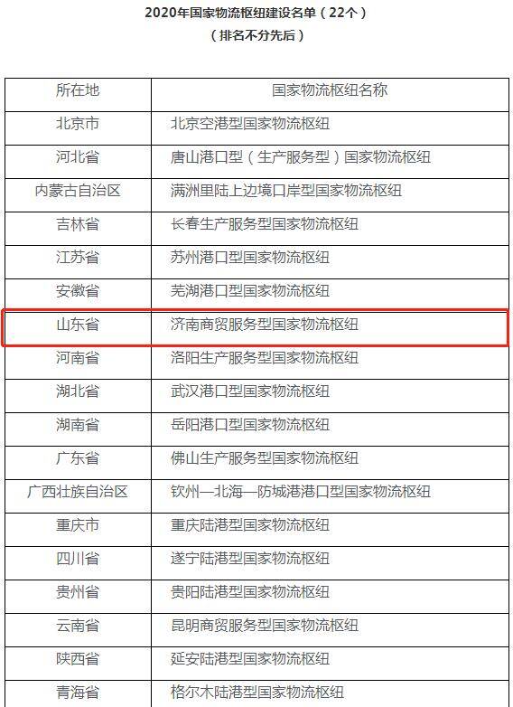 近日,國家發(fā)展改革委、交通運輸部聯(lián)合印發(fā)《關(guān)于做好2020年國家物流樞紐建設(shè)工作的通知》(發(fā)改經(jīng)貿(mào)﹝2020﹞1607號,簡稱《通知》),共有22個物流樞紐入選2020年國家物流樞紐建設(shè)名單。山東省濟南商貿(mào)服務(wù)型國家物流樞紐、青島商貿(mào)服務(wù)型國家物流樞紐成功入選,山東省入選樞紐數(shù)量位列全國第一。