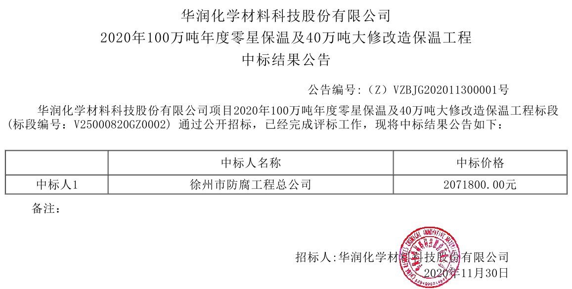 移動版:2020年100萬噸年度零星保溫及40萬噸大修改造保溫工程中標結(jié)果公告