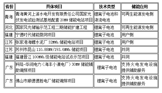 國家能源局公示的首批科技創(chuàng)新(儲(chǔ)能)試點(diǎn)示范項(xiàng)目清單