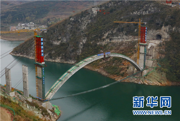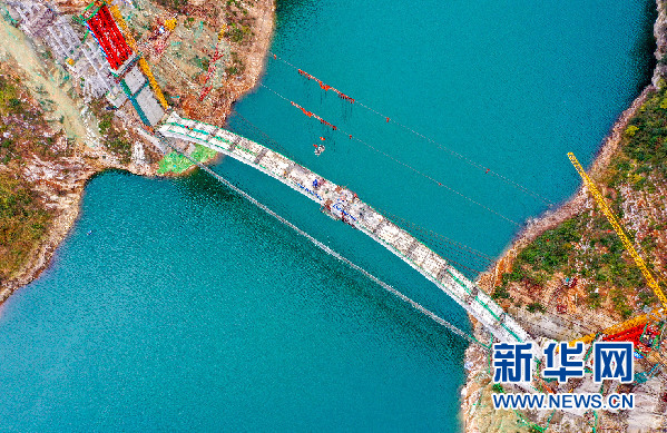 拱橋在進行合龍施工。新華網(wǎng)發(fā)(楊良強 攝)