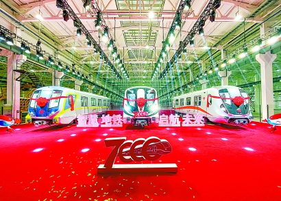 昨天下午,隨著三列最新的全自動(dòng)駕駛列車亮相上海地鐵封浜基地,上海地鐵列車數(shù)量正式進(jìn)入7000輛的新時(shí)代。 記者 孟雨涵 攝