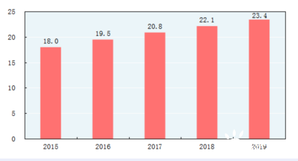 2015-2019年清潔能源消費量占能源消費總量的比重(國家統(tǒng)計局)