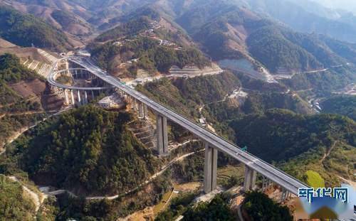 1月20日拍攝的思瀾高速控制性工程謙邁河特大橋(無人機(jī)照片)。新華社記者 陳欣波 攝