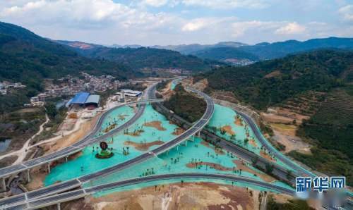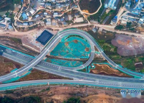 1月20日拍攝的思瀾高速起點(diǎn)、連接昆磨高速的思瀾高速曼歇壩互通立交(無人機(jī)照片)。新華社記者 陳欣波 攝
