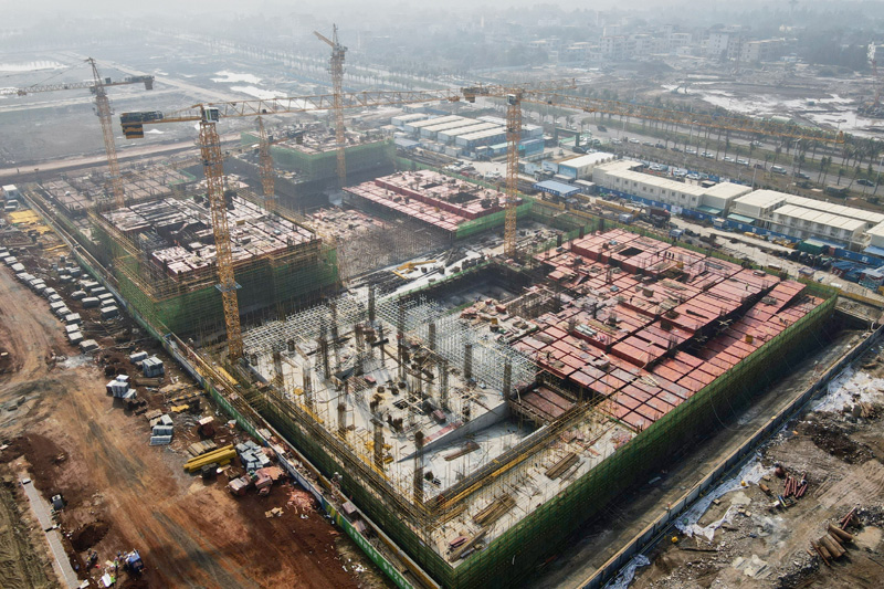 1月23日拍攝的海口金融中心項(xiàng)目現(xiàn)場(chǎng)(無(wú)人機(jī)照片)。