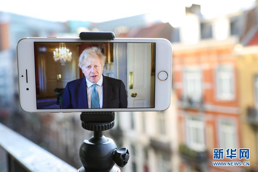 這是1月25日在比利時布魯塞爾拍攝的英國首相約翰遜在首屆氣候適應峰會上發(fā)表視頻講話的屏幕畫面。
