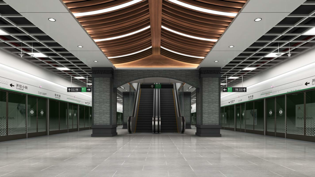 其中泰昌路站、六緯路站、徐州道站、金街站四個站為特色文化站,在標準站的基礎上,結(jié)合周邊環(huán)境及文化,強化個性表達,采用標準化、藝術(shù)化、科技化、人性化、綠色等多種手段,表達整體空間設計,是全線的文化屬性亮點。