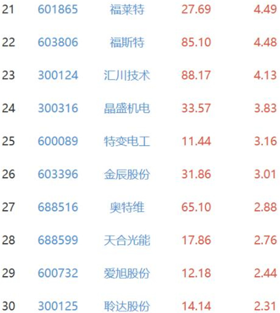 30日全天,數(shù)百只光伏概念股中,不少個(gè)股出現(xiàn)了大漲行情,其中錦浪科技、固德威、中信博、陽光電源、隆基股份、新特能源、上能電氣、通威股份、東方日升全線暴漲。這些概念股的總成交額為800億元,也打破了多日以來股市的寂靜。
