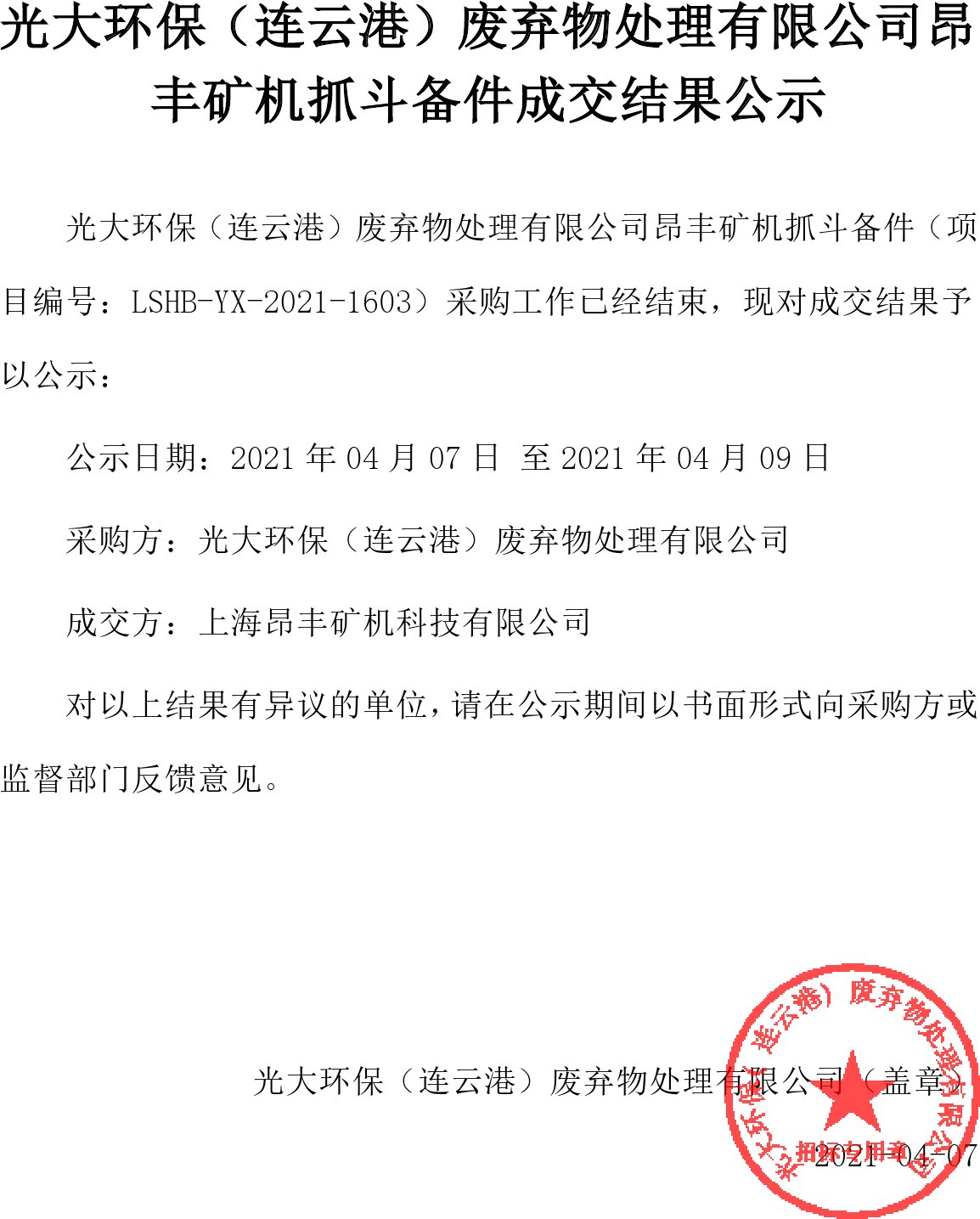 移動(dòng)版:江蘇:昂豐礦機(jī)抓斗備件成交結(jié)果公示