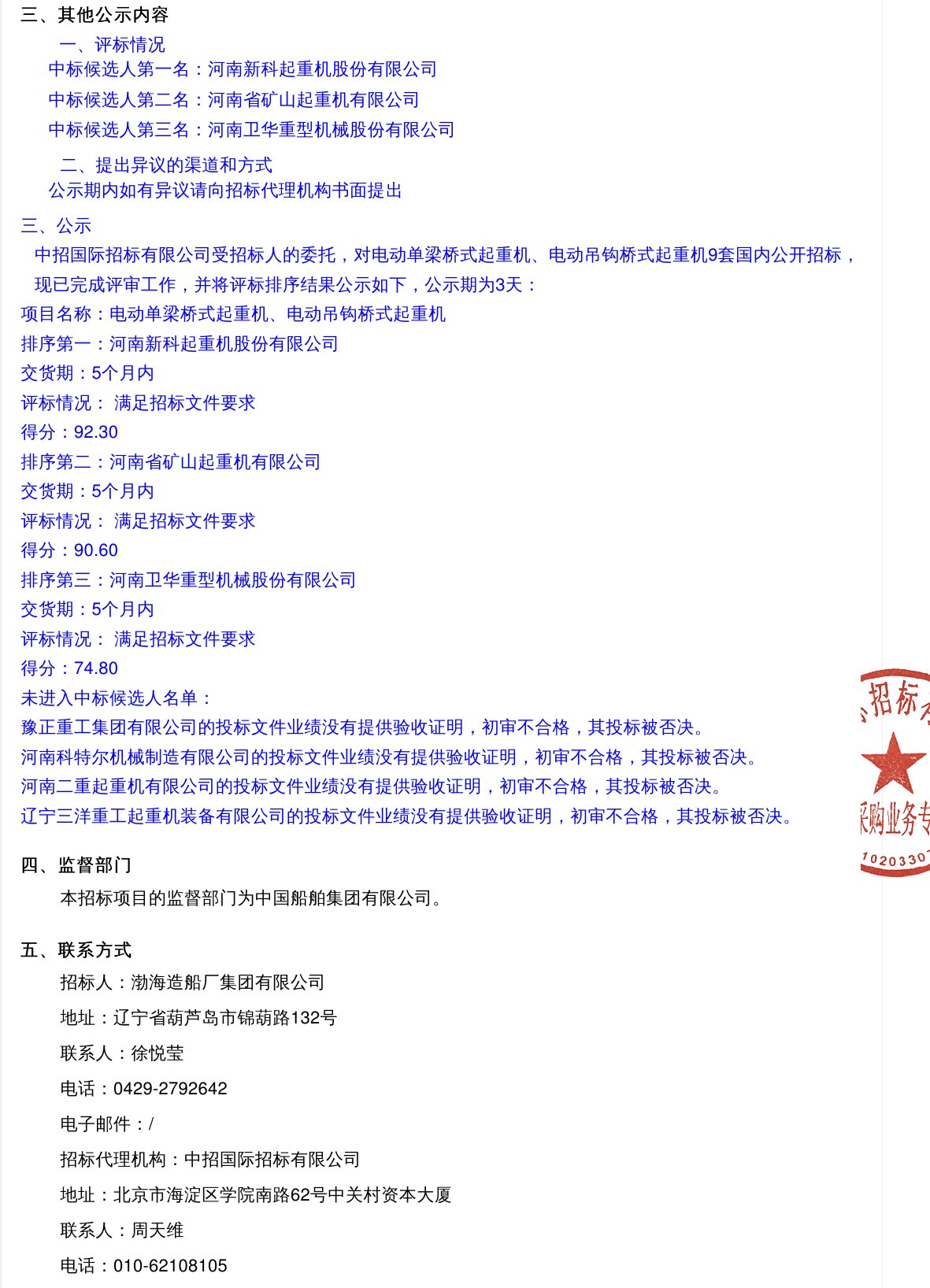 移動(dòng)版:遼寧:電動(dòng)單梁橋式起重機(jī)、電動(dòng)吊鉤橋式起重機(jī)-中標(biāo)候選人公示