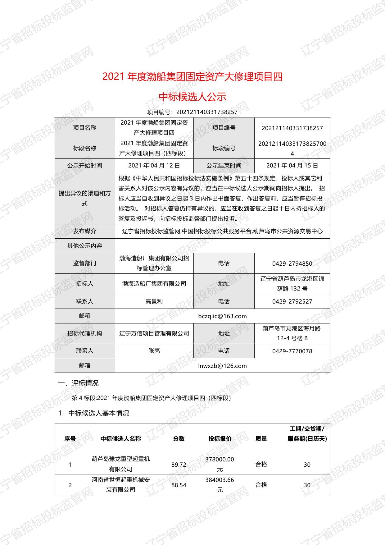 移動版:遼寧:2021年度渤船集團(tuán)固定資產(chǎn)大修理項(xiàng)目四中標(biāo)候選人公示