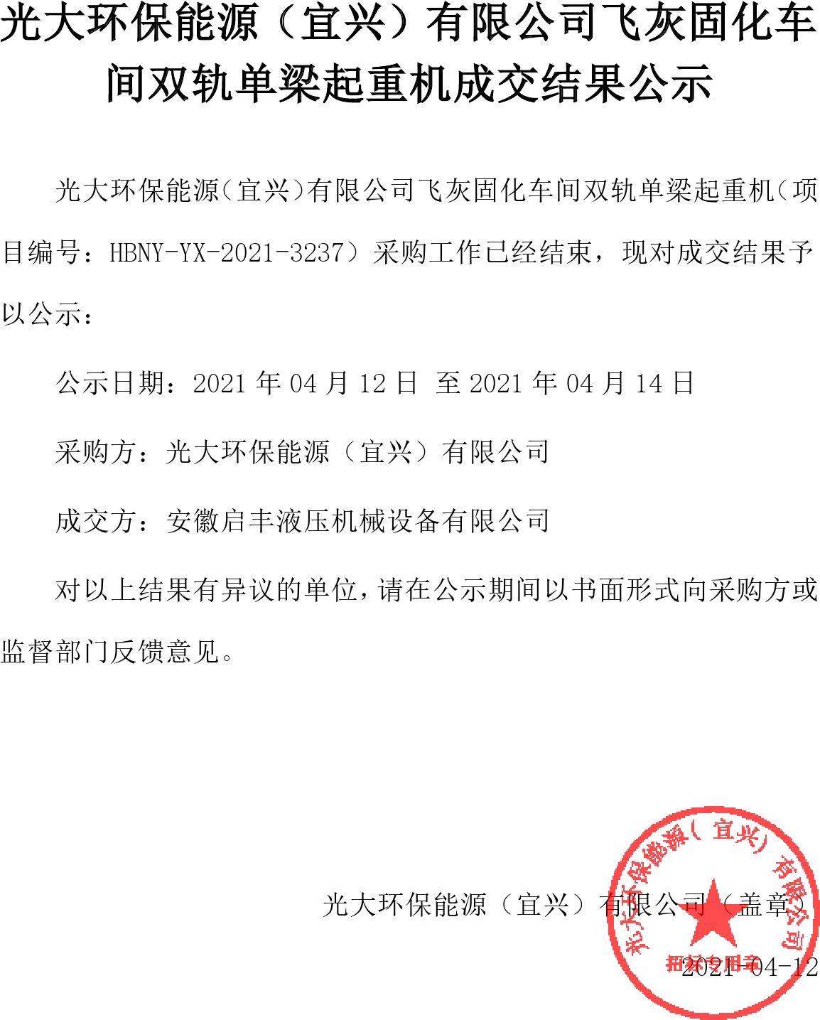 移動版:江蘇:飛灰固化車間雙軌單梁起重機(jī)成交結(jié)果公示