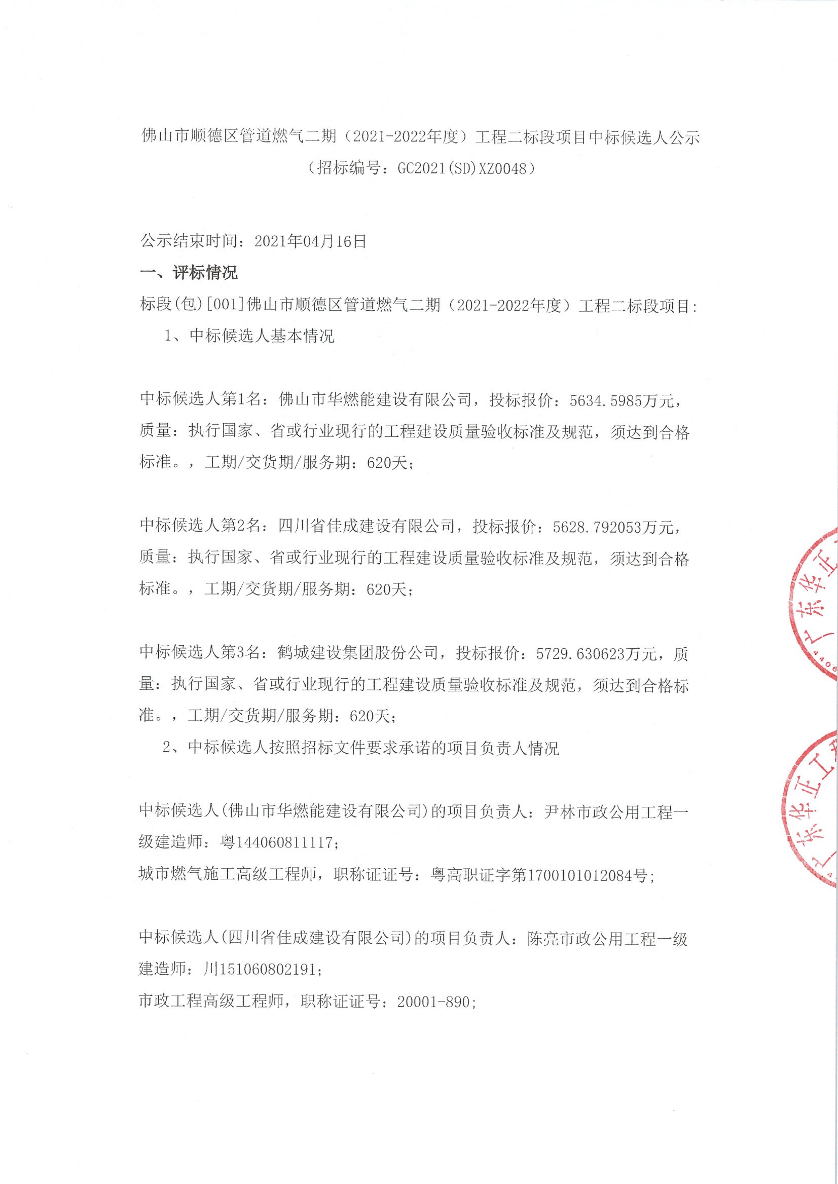廣東:佛山市順德區(qū)管道燃?xì)舛冢?021-2022年度)工程二標(biāo)段項(xiàng)目中標(biāo)候選人公示