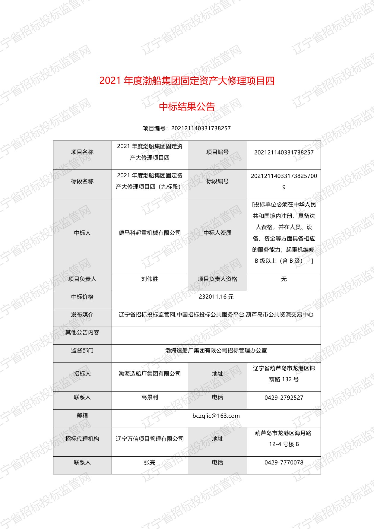 移動版:遼寧:2021年度渤船集團(tuán)固定資產(chǎn)大修理項目四中標(biāo)結(jié)果公告