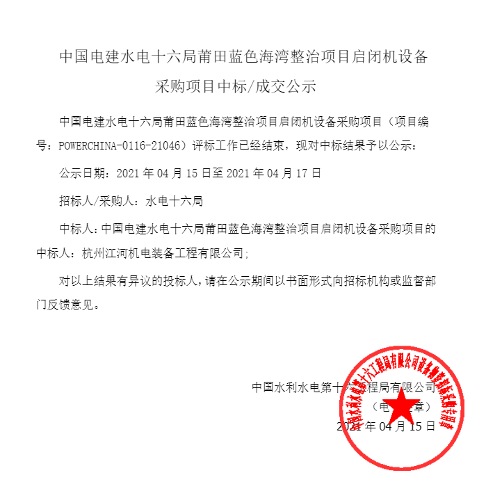 移動版:福建:啟閉機設(shè)備采購項目采購項目成交公示