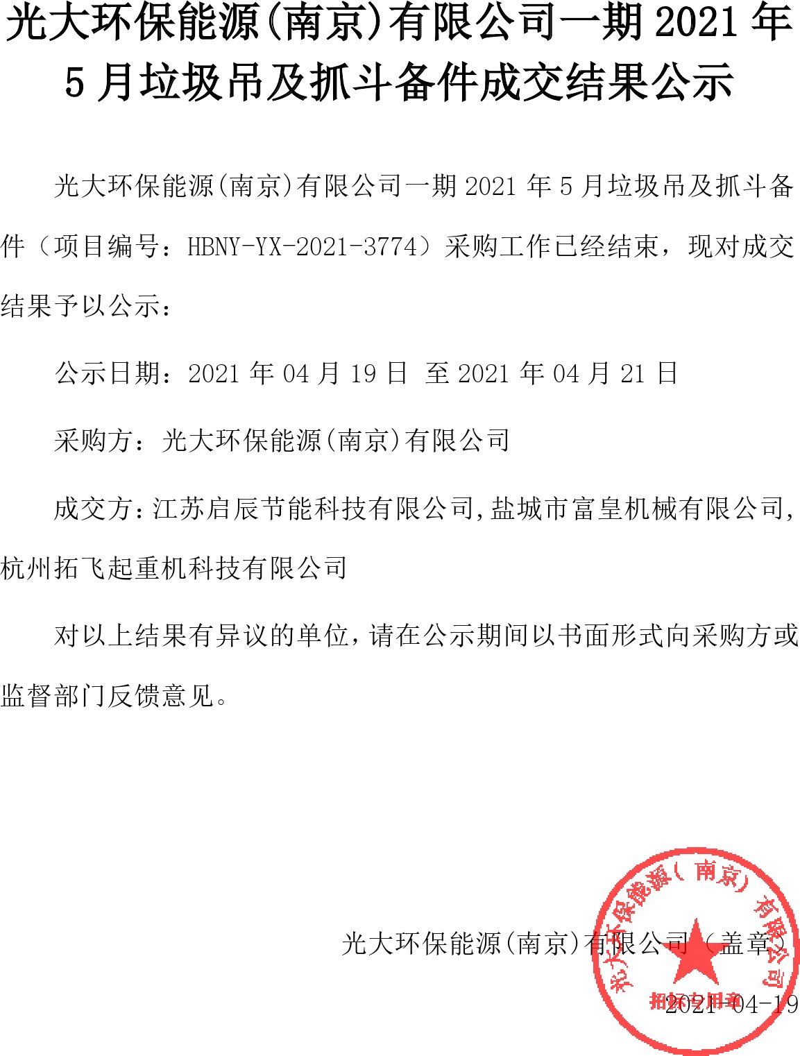 移動版:江蘇:一期2021年5月垃圾吊及抓斗備件成交結(jié)果公示