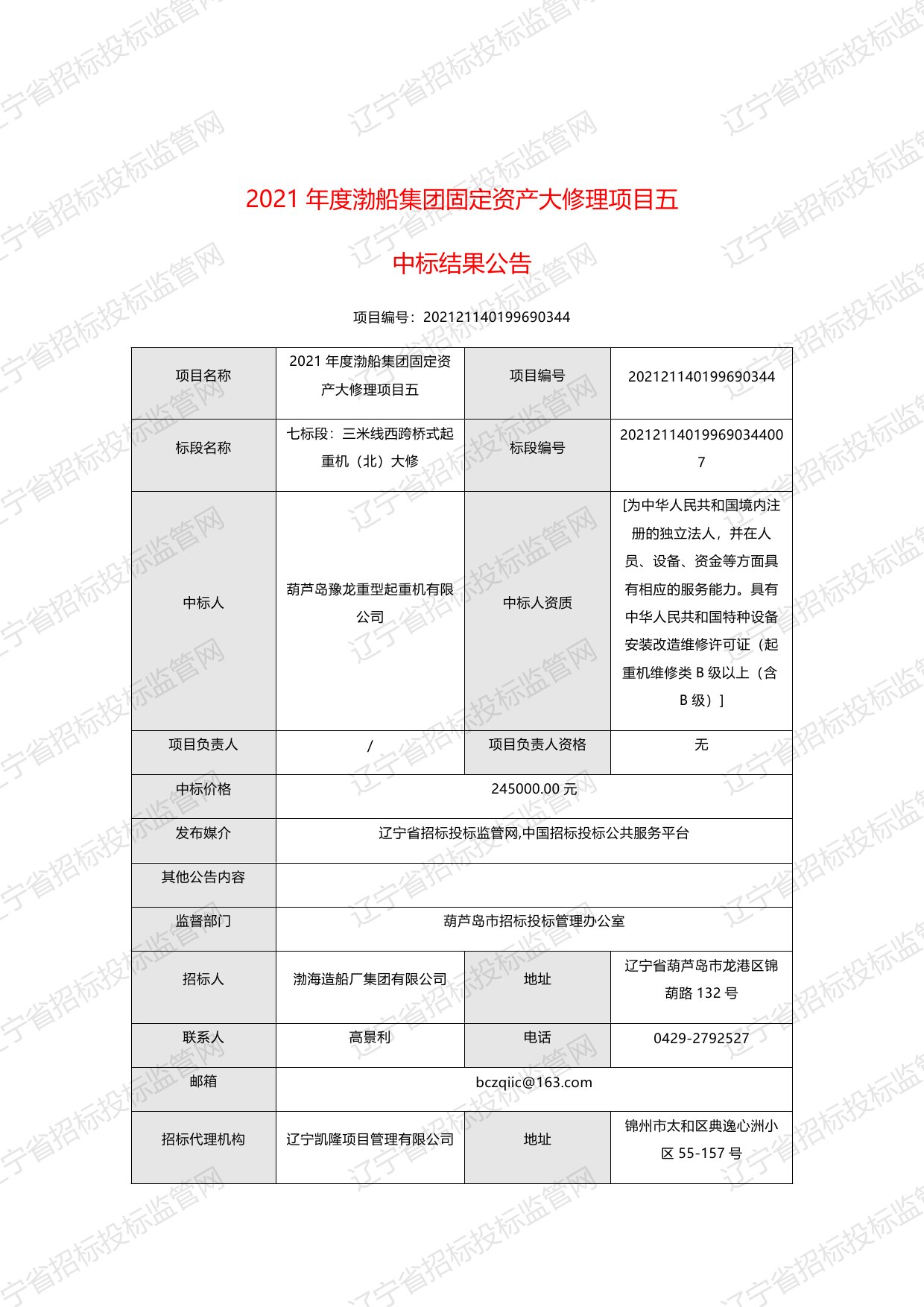 移動版:遼寧:2021年度渤船集團固定資產(chǎn)大修理項目五中標結果公告