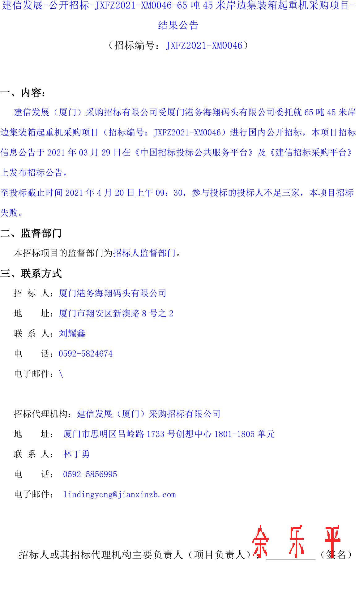 移動版:福建:65噸45米岸邊集裝箱起重機采購項目-結(jié)果公告