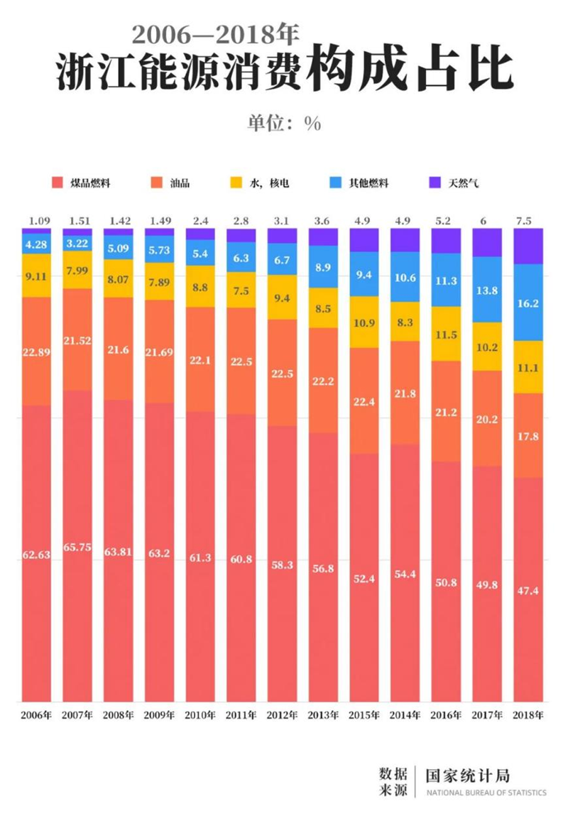 2006—2018年間,浙江能源消費構(gòu)成占比變化。