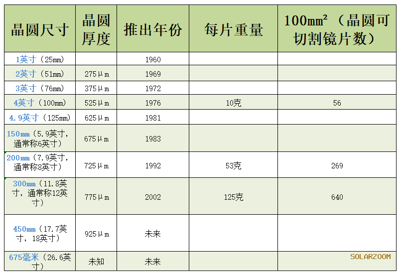 在保障材料可靠的前提下,最基本的物理邏輯就是如果某種材料做的越大,那么相應(yīng)的厚度也需要提升保證其強(qiáng)度或性能。下圖從半導(dǎo)體的發(fā)展史可以看出隨著晶圓尺寸的增大,其對(duì)應(yīng)的厚度也在逐漸提升。對(duì)于匹配雙玻組件的光伏玻璃,2mm的厚度自從推出以來(lái)維持了2年以上時(shí)間穩(wěn)定不變,展會(huì)上也經(jīng)常有廠家推出更薄的諸如1.6mm.1.0mm的超薄玻璃,但是組件廠商并沒有接受這種超薄的玻璃,從另一方面表明玻璃做的越大,厚度至少要保持不變,而不會(huì)進(jìn)一步降低。所以玻璃要同時(shí)做到超大和超薄就是魚與熊掌不可兼得。