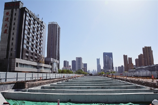地鐵1號線小井峪站建設(shè)現(xiàn)場。