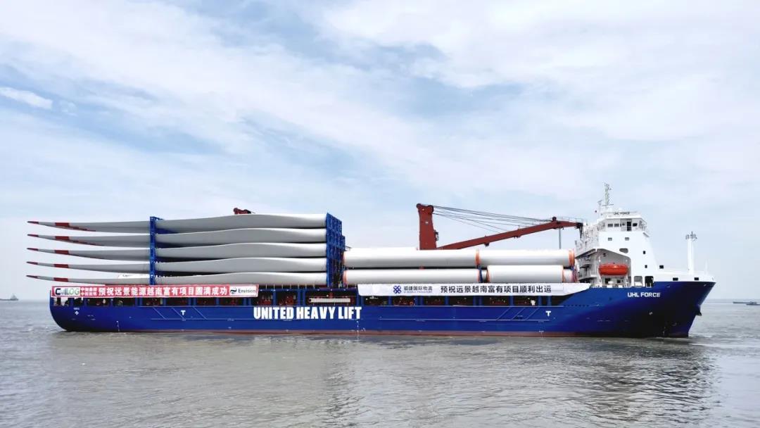 近日,裝載遠景能源EN-156/4.5和EN-156/3.3智能風機的運輸船,分別從中國江蘇常熟港和太倉港啟航。6月底前,共計300多臺遠景能源智能風機將陸續(xù)從這兩個港口發(fā)往越南。
