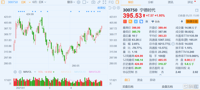 寧德時(shí)代董事長曾毓群對(duì)外透露,寧德時(shí)代將于2021年7月前后發(fā)布鈉電池。5月24日,寧德時(shí)代股價(jià)上漲3.3%,今天繼續(xù)收漲2%。