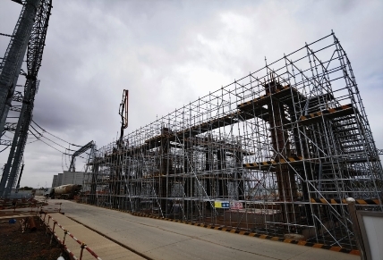在主變防火墻澆筑施工過程中,項(xiàng)目管理部嚴(yán)格執(zhí)行冀北公司有關(guān)規(guī)定,工程所用腳手架為當(dāng)前建筑行業(yè)中推廣使用的“盤扣式”腳手架。其在工程中的應(yīng)用皆在為防火墻整體施工安全提供可靠保證,為實(shí)現(xiàn)防火墻整體工期計劃奠定基礎(chǔ)。 (盤扣式腳手架搭設(shè)5月17日完成。)