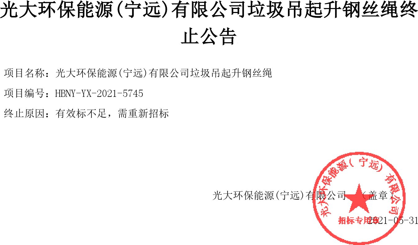 移動(dòng)版:湖南:光大環(huán)保能源(寧遠(yuǎn))有限公司垃圾吊起升鋼絲繩終止公告