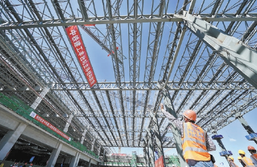 5月30日上午,北京豐臺站歷時2年多的建設(shè),提前33天實(shí)現(xiàn)主體結(jié)構(gòu)全面封頂。 本報記者 劉平攝