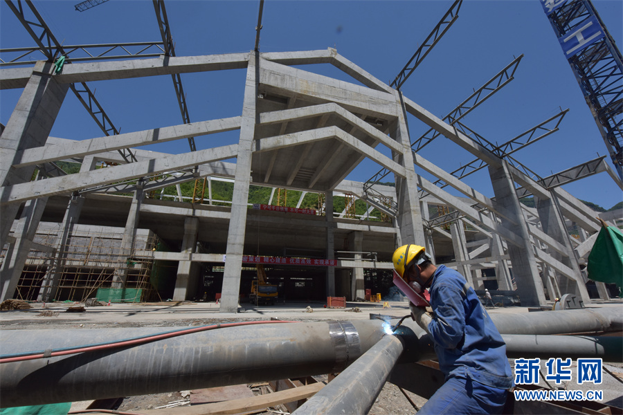 圖為鄭萬高鐵神農架站房施工現(xiàn)場。新華網(wǎng)發(fā) 易偉 攝