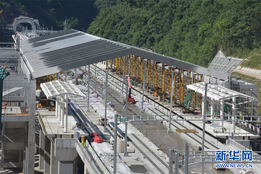 神農架站站房主體框架結構全面封頂。新華網(wǎng)發(fā) 喻杰 攝