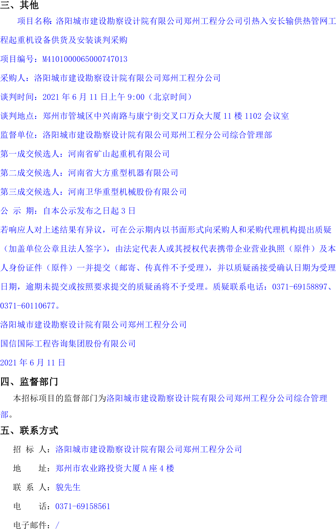 移動(dòng)版:河南:起重機(jī)設(shè)備供貨及安裝談判采購(gòu)評(píng)審公示
