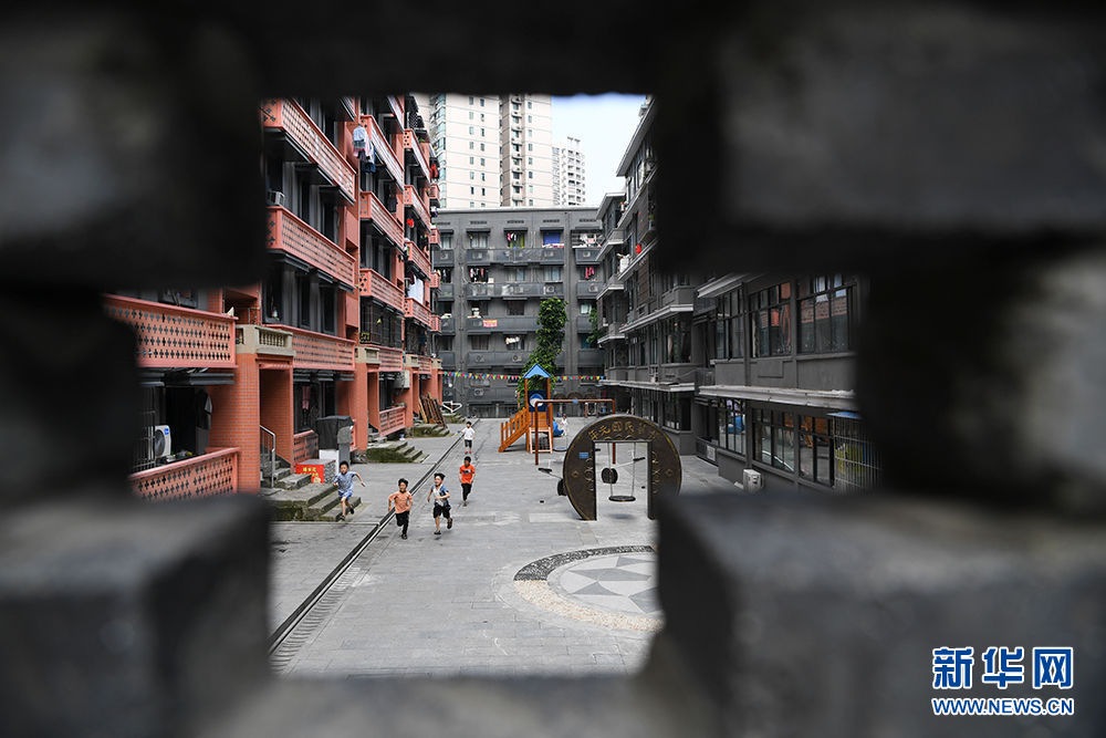6月1日,小朋友在重慶市南岸區(qū)銅元局街道雙峰山社區(qū)長江村小區(qū)內(nèi)玩耍。新華社記者 王全超 攝