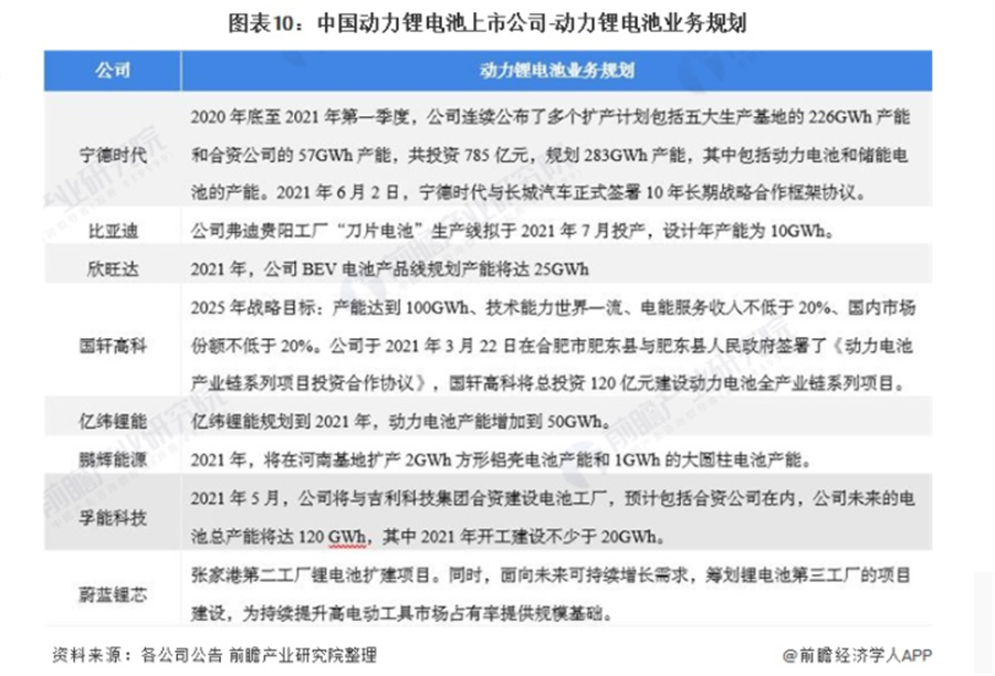 動力鋰電池行業(yè)上市公司動力鋰電池業(yè)務規(guī)劃對比