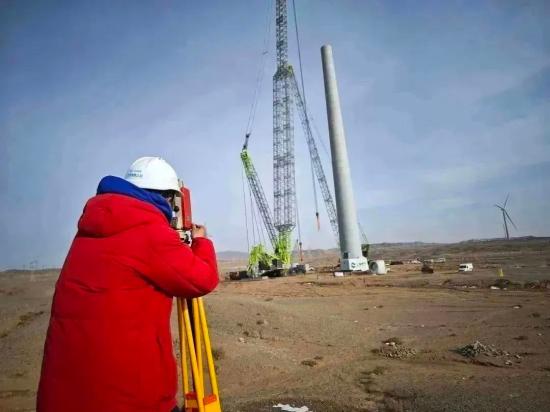 該項目是混塔風機安裝項目,混塔塔架相較于柔性鋼塔,對施工工藝要求更為嚴格。并且項目所在地地勢多為沙漠戈壁,平均每月有12天的大風氣候,風速可達15米至30米每秒,時有沙塵氣候產(chǎn)生,給施工造成極大影響。終究,施工方技能員們因地制宜,為項目部量身打造出了一套技能施工方案,作為主吊設(shè)備的ZCC13000履帶吊的安穩(wěn)發(fā)揮,也為項目順利收官供給了強壯保障。