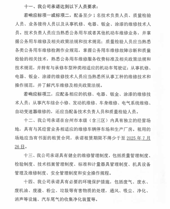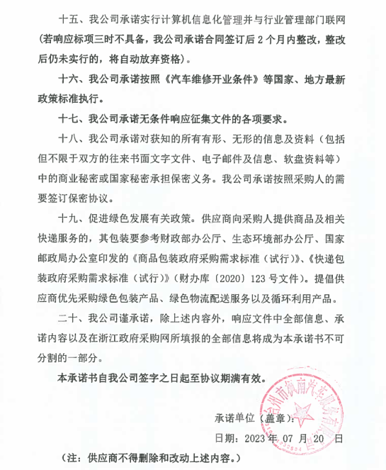 一、二類維修供應(yīng)商(綜合修理類) 臺(tái)州市楓南汽車服務(wù)有限公司一、二類維修供應(yīng)商(綜合修理類) 承諾書:
