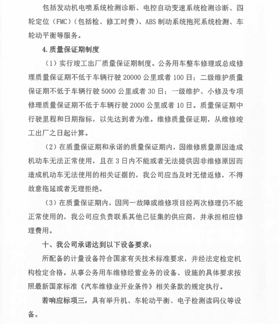 8、承諾甲方員工的私人車輛按自愿的原則到乙方維修保養(yǎng)。員工的車輛同等享受中選結(jié)果的價(jià)格、服務(wù)條款,費(fèi)用由員工自行支付。