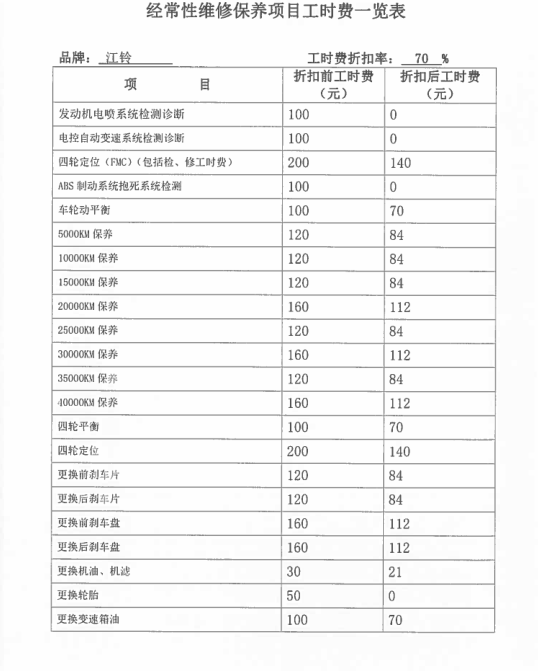 經(jīng)常性維修保養(yǎng)項(xiàng)目工時(shí)費(fèi)一覽表: