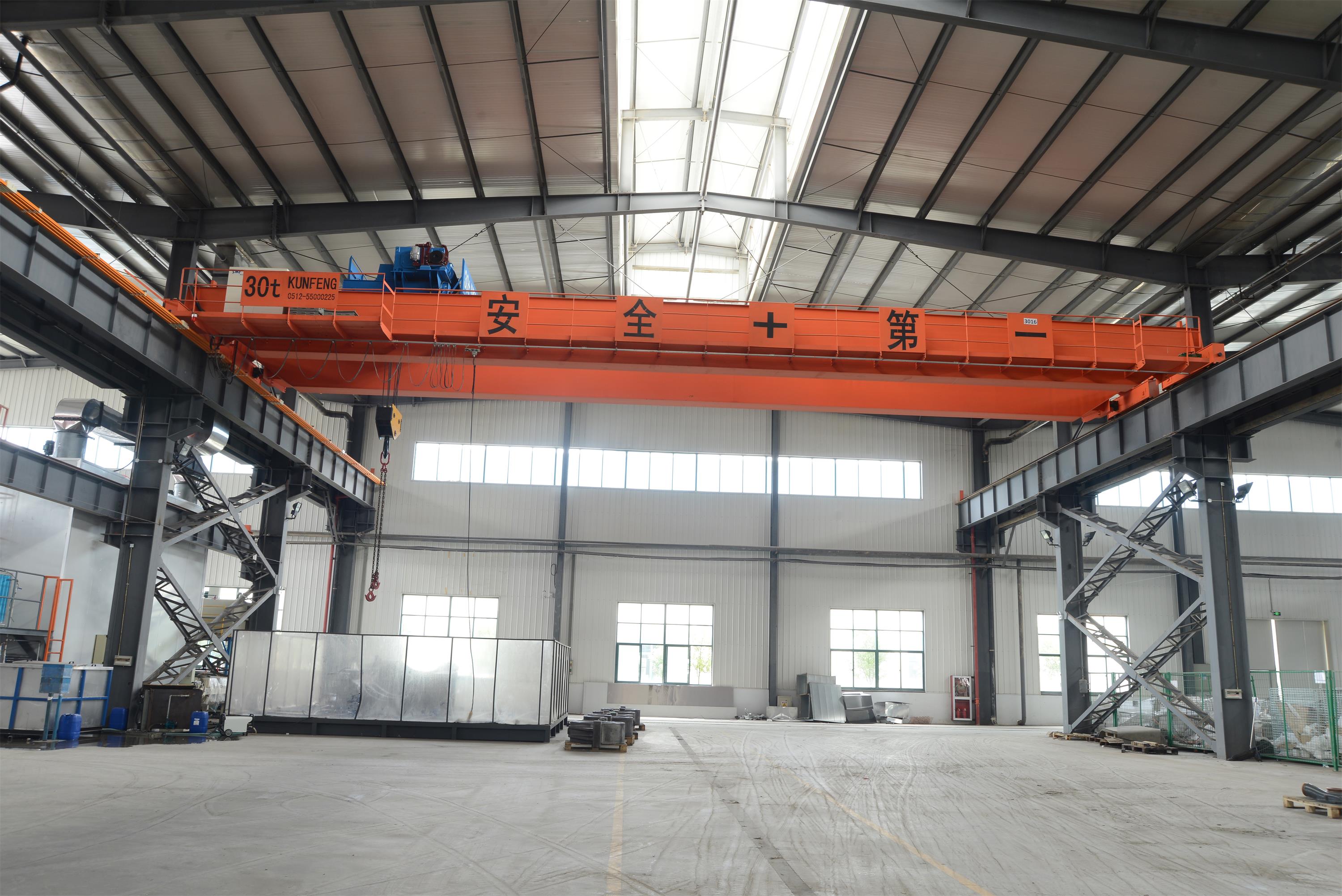 橋式起重機(jī)是橫架于車(chē)間、倉(cāng)庫(kù)和料場(chǎng)上空進(jìn)行物料吊運(yùn)的起重設(shè)備。由于它的兩端坐落在高大的水泥柱或者金屬支架上,形狀似橋。橋式起重機(jī)的橋架沿鋪設(shè)在兩側(cè)高架上的軌道縱向運(yùn)行,可以充分利用橋架下面的空間吊運(yùn)物料,不受地面設(shè)備的阻礙。它是使用范圍**廣、數(shù)量**多的一種起重機(jī)械。