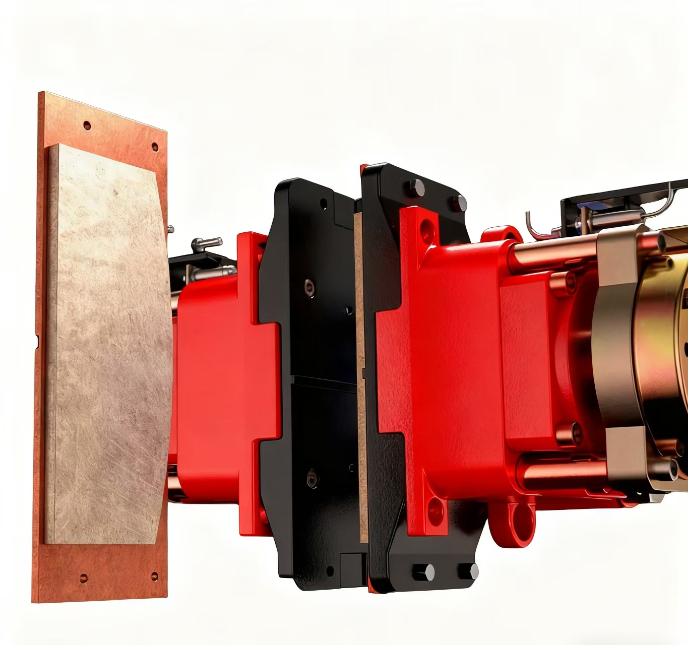 4. 摩擦片與制動盤接觸面積大,摩擦片為無石棉銅基粉末冶金材料,能適應(yīng)高溫高負荷重載工況,保證制動時摩擦系數(shù)穩(wěn)定