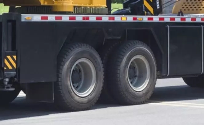 輪轂和車胎是起重機(jī)行駛系統(tǒng)的重要部件,它們聯(lián)手撐起整車的質(zhì)量,緩和由路面?zhèn)鬟f來的沖擊載荷。輪胎和路面之間的附著作用為汽車提供驅(qū)動力和制動力,產(chǎn)生平衡汽車轉(zhuǎn)向離心力的側(cè)向力,以便順利轉(zhuǎn)向,并通過車胎產(chǎn)生的自動回正力矩,使輪轂具有保持直線行駛的能力。