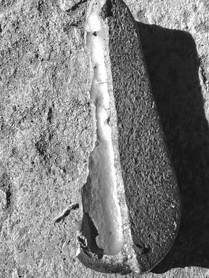 筆者對(duì)一臺(tái)電動(dòng)葫蘆橋式起重機(jī)(額定載荷:5t跨度:14.1m;起升速度:8m/min;大車運(yùn)行速度:20m/min;小車運(yùn)行速度:20m/min;工作級(jí)別:A3;操縱方式:地面隨行操縱)實(shí)施安裝監(jiān)督檢驗(yàn),當(dāng)起吊額定載荷做下降制動(dòng)試驗(yàn)時(shí),在制動(dòng)載荷的作用下,繩端固定楔塊突然破裂(如圖1所示)從楔套擠出,造成固定端繩頭脫落(如圖2所示),導(dǎo)致吊鉤組和試驗(yàn)載荷墜落。
